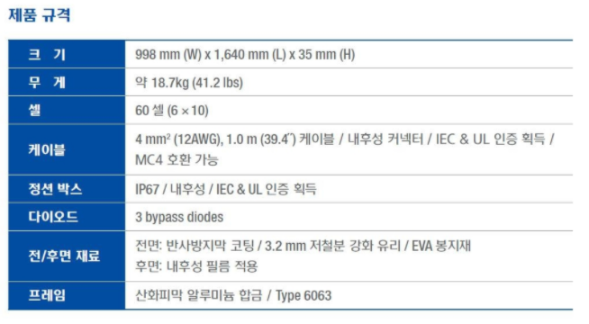 - 제품명 : 한화큐셀 310W 패널