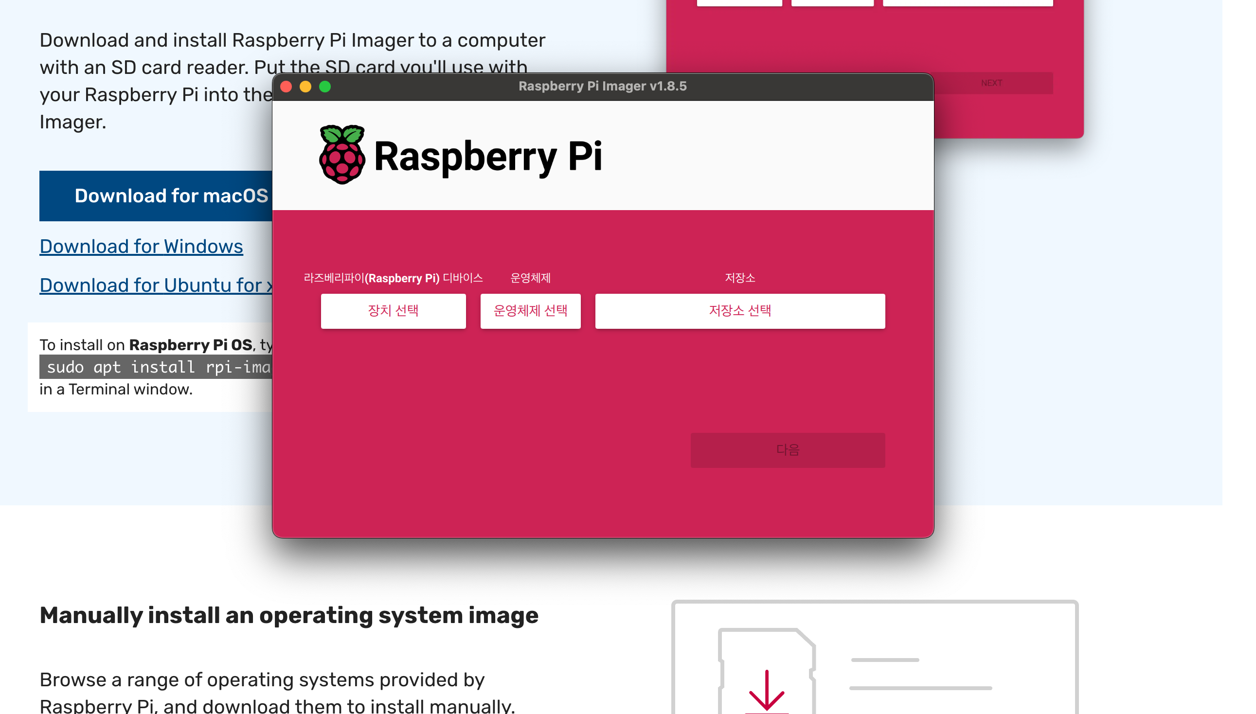 우선 아래 링크로 라즈베리파이 OS Writer를 설치해줍니다.