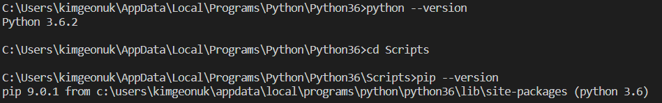 이제 명령어창에서 python / pip를 자유자제로 사용하실 수 있습니다 !! 이제 절반 왔습니다.