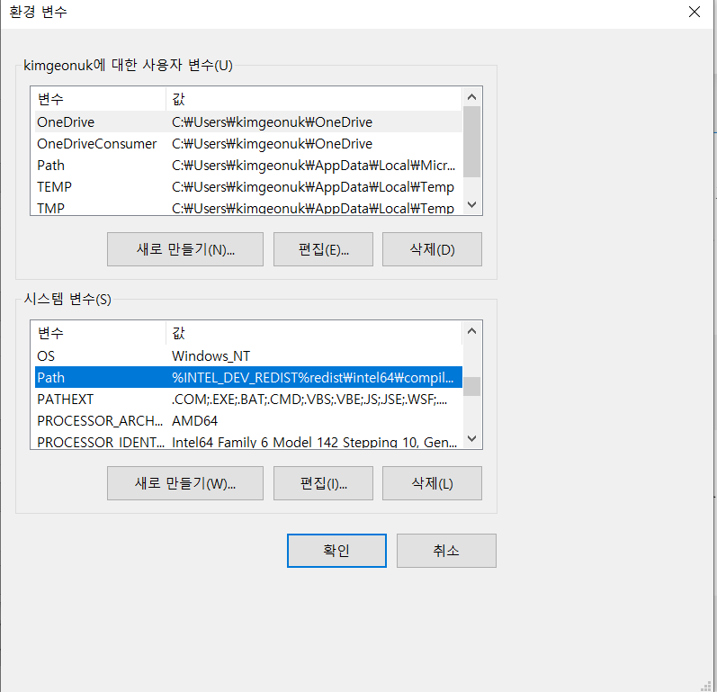 저는 위의 경로가 길기 때문에 환경변수를 재설정 해주도록 하겠습니다.